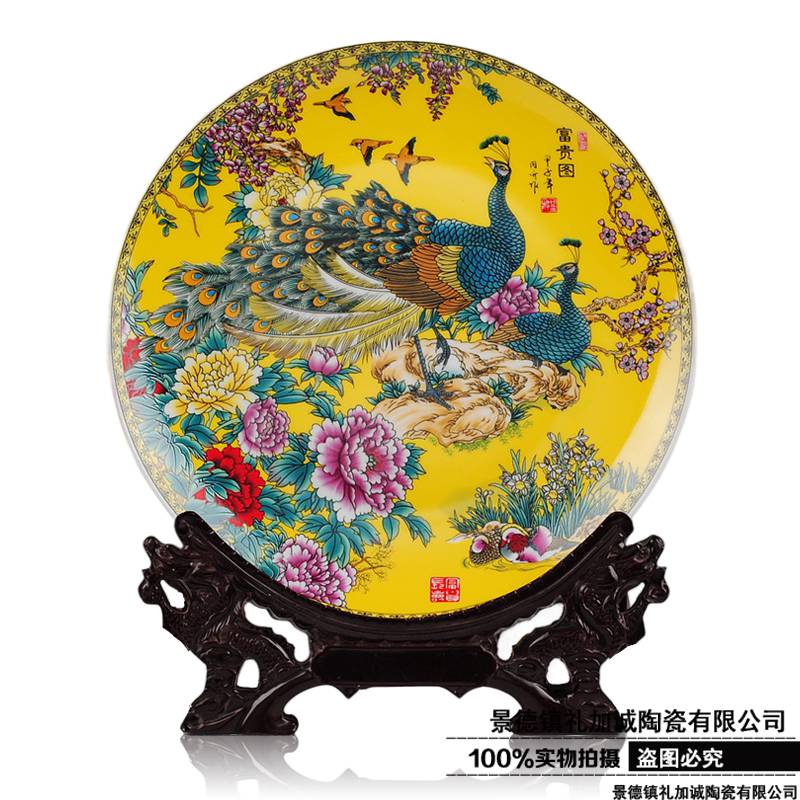 景德镇大瓷盘常规规格在1米-1.8米,画面有虫鱼鸟兽,梅兰竹菊,莲花,植物,楼阁,牡丹,龙纹,庭院.画等。由于大瓷盘直径太大,通过模具制作是根本不可行的。因此制作这款陶瓷大瓷盘从泥胚的制作开始都是人工手工拉坯、修坯,待泥坯干燥后,用特殊的陶瓷颜料将精选的画面手绘到瓷盘上面。大瓷盘的烧制是经过1300摄制度的高温烧制而成,这一特性是的我们的陶瓷大瓷盘画面可长期保存、不退染色。